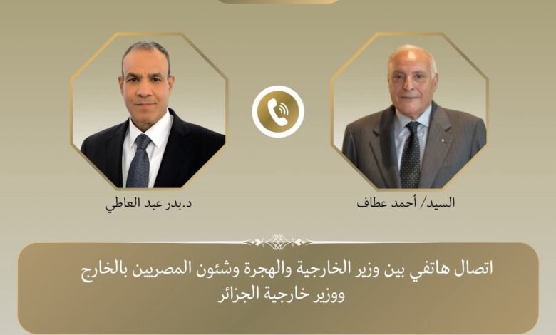 جرى اتصال هاتفي بين د. بدر عبد العاطي وزير الخارجية والهجرة وشئون المصريين بالخارج، والسيد أحمد عطاف وزير الشؤون الخارجية والجالية الوطنية بالخارج بالجمهورية الجزائرية الديمقراطية الشعبية الشقيقة، يوم السبت ١٨ أكتوبر، حيث تناول الاتصال سبل تعزيز التعاون الثنائي وتبادل الرؤى حول القضايا الإقليمية ذات الاهتمام المشترك.