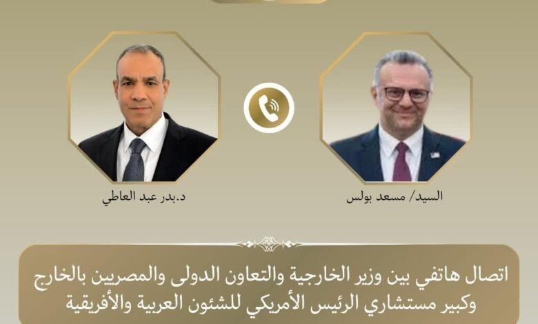 جرى اتصال هاتفي بين د. بدر عبد العاطي وزير الخارجية والتعاون الدولي والمصريين بالخارج، والسيد “مسعد بولس” كبير مستشاري الرئيس الأمريكي للشئون العربية والأفريقية يوم الجمعة ١٣ مارس، وذلك لمتابعة التطورات على الساحة اللبنانية ومستجدات الوضع الإقليمي في ظل التصعيد العسكري الذي تشهده المنطقة.