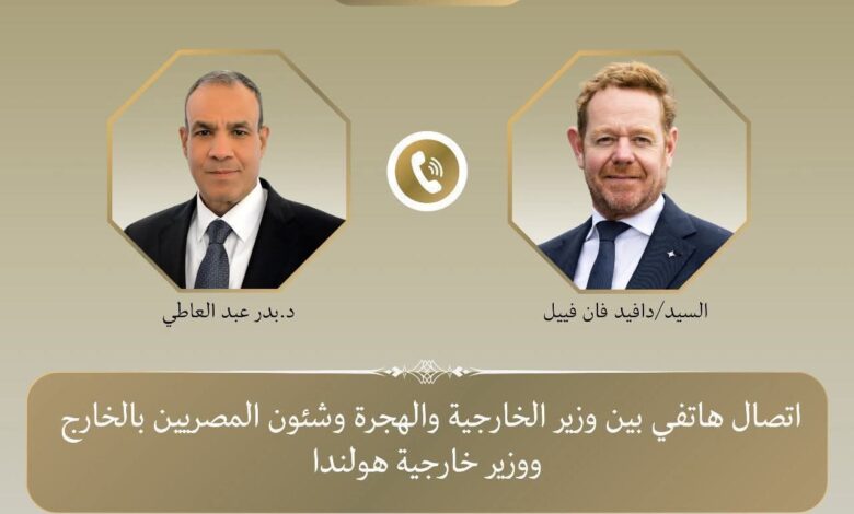 جرى اتصال هاتفي بين د. بدر عبد العاطي وزير الخارجية والهجرة وشئون المصريين بالخارج، والسيد “دافيد فان فييل” وزير خارجية هولندا يوم الثلاثاء ٢ ديسمبر، لبحث العلاقات الثنائية ولتناول التطورات في قطاع غزة.