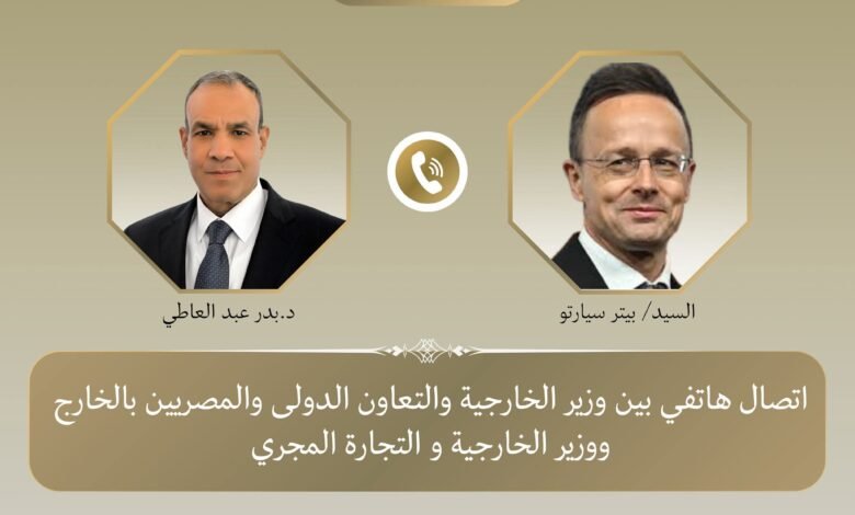 جرى اتصال هاتفي بين د. بدر عبد العاطي وزير الخارجية والتعاون الدولي وشؤون المصريين بالخارج، والسيد بيتر سيارتو وزير الخارجية والتجارة المجري، يوم الثلاثاء ٢٤ فبراير، وذلك لبحث سبل تعزيز العلاقات الثنائية بين البلدين وتبادل الرؤى إزاء عدد من القضايا الإقليمية والدولية ذات الاهتمام المشترك.