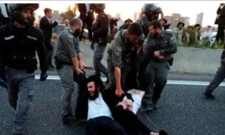 اشتبكت شرطة الاحتلال الإسرائيلية، مع محتجين من طائفة الحريديم المعترضين على قانون التجنيد، ما أدى إلى وقوع إصابات واعتقال العديد منهم، وبحسب وسائل إعلام عبرية، أغلق المتظاهرون الطريق السريع رقم 4 أمام حركة المرور في منطقة بني براك بمقاطعة تل أبيب بالأراضي المحتلة.