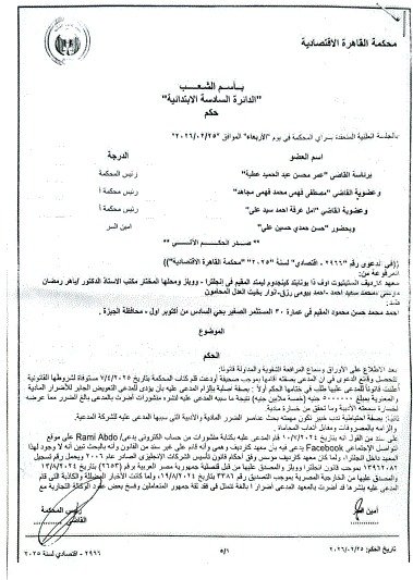 وانتهت المحكمة إلى إلزام المدعى عليه بدفع تعويض مالي قدره 390,000 جنيه، تعويضًا عن الأضرار التي لحقت بالمؤسسة نتيجة تلك المنشورات.