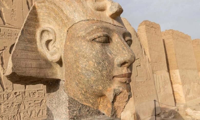 الانتهاء من ترميم رأس تمثال من الجرانيت للملك رمسيس الثاني داخل معبده في أبيدوس