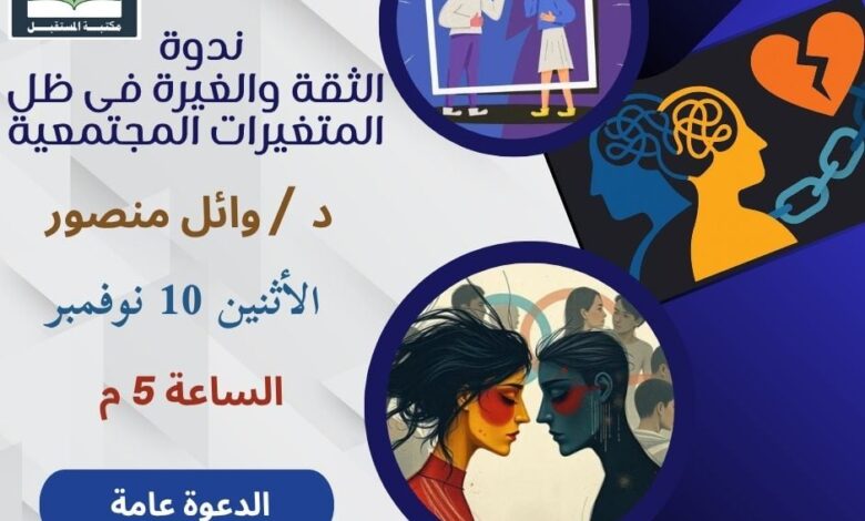 “الثقة والغيرة فى ظل المتغيرات المجتمعية” ندوة فى مكتبة المستقبل بعد غد الاثنين