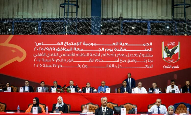 أعلن المستشار محمد أبو ضيف، رئيس اللجنة القضائية المشرفة على أعمال الجمعية العمومية الخاصة بالنادي الأهلي التي عُقدت اليوم، عن اكتمال النصاب القانوني للحضور، وموافقة أغلبية الأعضاء على التعديلات الواردة على لائحة النظام الأساسي للنادي بما يتوافق مع القانون رقم ١٧١ لسنة ٢٠٢٥.