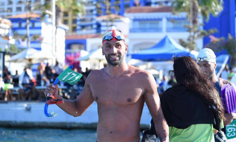 ببطولة العالم للسباحة بالزعانف في المياه المفتوحة المقامة في مدينة العلمين الأولى في سباق1 كم زعانف مزدوجة (رجال ) والثانية في سباق 3 كم زعانف مزدوجة.
