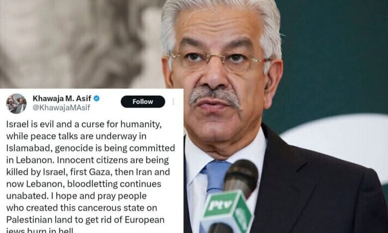 شن وزير الدفاع الباكستاني خواجة آصف هجوما لاذعا على إسـرائيـل واصفا إياها بـ”الشر واللعنة على البشرية” مشيرا إلى أنها ترتكب “إبـ ادة جماعية” في لبنان بالتزامن مع انعقاد محادثات السلام.