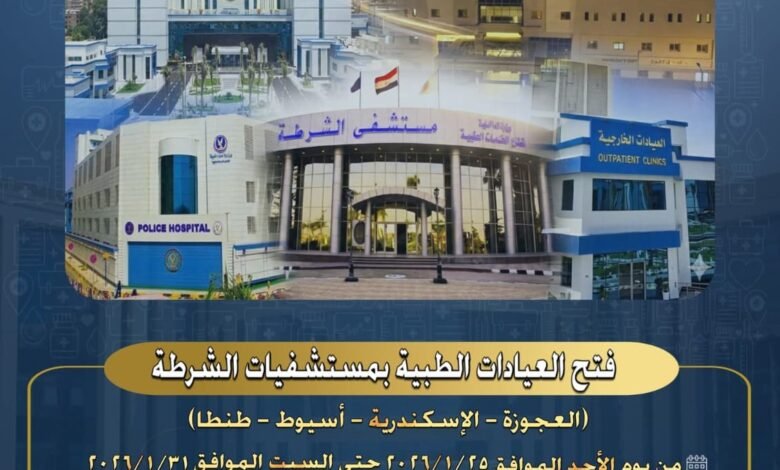 بمناسبة عيد الشرطة ال 74.. فتح العبادات الطبية بمستشفيات الشرطة وعيادات متنقلة للكشف على المواطنين مجانا