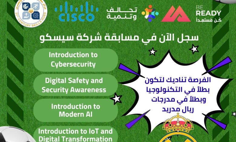 يعلن صندوق تطوير التعليم التابع لرئاسة مجلس الوزراء عن انضمامه إلى مسابقة ريال مدريد لشركة سيسكو العالمية، وذلك بالشراكة مع وزارة التعليم العالي والبحث العلمي في إطار مبادرة «كن مستعدًا»، والمبادرة الرئاسية «تحالف وتنمية»، بمشاركة أكاديميات سيسكو بالجامعات والمعاهد المصرية الحكومية والخاصة، بما يعكس توجه الدولة نحو دعم الشراكات الدولية في مجال التعليم والتدريب التقني وتأهيل الكوادر الشابة وفقًا لأحدث المعايير العالمية.