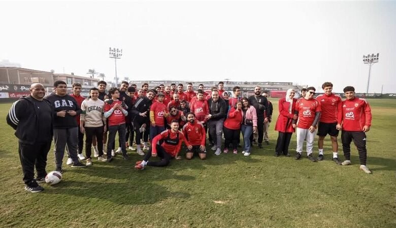 وكتبت الصفحة الرسمية للنادي الأهلي عبر موقع التواصل الاجتماعي «فيس بوك»: «زيارة مميزة من ذوي الهمم في مران فريقنا اليوم».