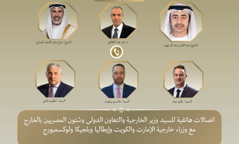 عبدالعاطي يبحث مع وزراء خارجية الإمارات والكويت وإيطاليا وبلجيكا ولوكسمبورج مستجدات الوضع الإقليمي في المنطقة