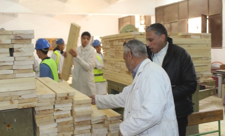 وخلال الجولة، تابع أعمال إعادة تدوير وصيانة المقاعد والديسكات المدرسية التي تم تنفيذها بأيدي طلاب التعليم الفني داخل الورش المدرسية، في نموذج عملي يجسد قدرة طلاب التعليم الفني على تحويل الإمكانيات المتاحة إلى قيمة حقيقية تخدم العملية التعليمية.