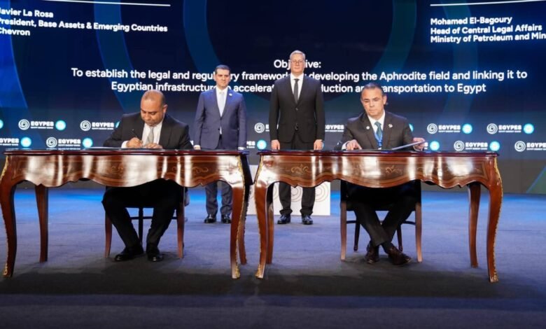 على هامش فعاليات مؤتمر ومعرض مصر الدولي للطاقة “إيجبس 2026”، شهد المهندس كريم بدوي، وزير البترول والثروة المعدنية، والسيد مايكل داميانوس، وزير الطاقة والتجارة والصناعة بجمهورية قبرص، توقيع اتفاقية هامة تستهدف تسريع تنمية وإنتاج الغاز من حقل “أفروديت” القبرصي، وربطه بالبنية التحتية المصرية ونقله إلى مصر، بما يعزز دورها كمركز إقليمي لتداول وتجارة الطاقة.
