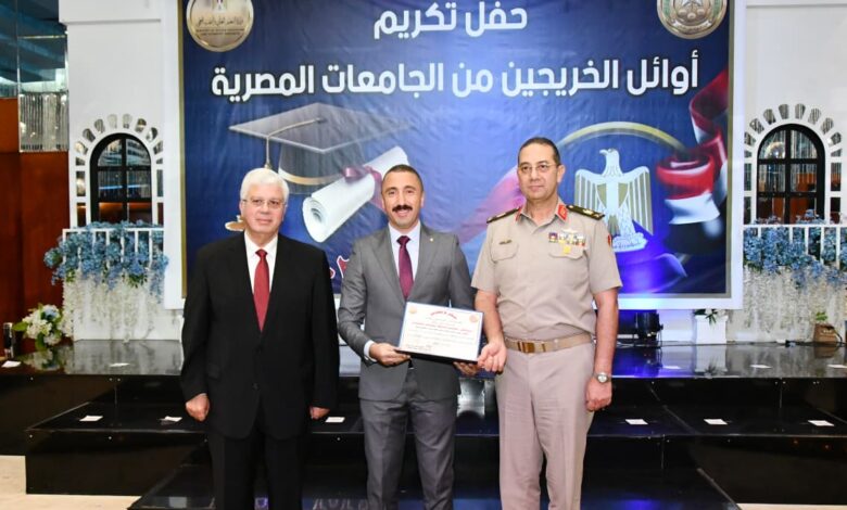 فى إطار حرص القوات المسلحة على تعزيز أوجه التعاون مع كافة الوزارات والمؤسسات بالدولة إيماناً بأهمية التكامل فى الدور المجتمعى والتنسيق المشترك الذى يعود بالنفع على الوطن بكافة المجالات ، نظمت قوات الدفاع الشعبى والعسكرى بالتعاون مع وزارة التعليم العالى والبحث العلمى إحتفالية لتكريم أوائل الطلبة من خريجى الجامعات المصرية للعام الدراسى الماضى تقديراً لتميزهم العلمى وحرصهم على التفوق خلال مختلف المراحل الدراسية , وذلك بحضور الدكتور أيمن عاشور وزير التعليم العالى والبحث العلمى .