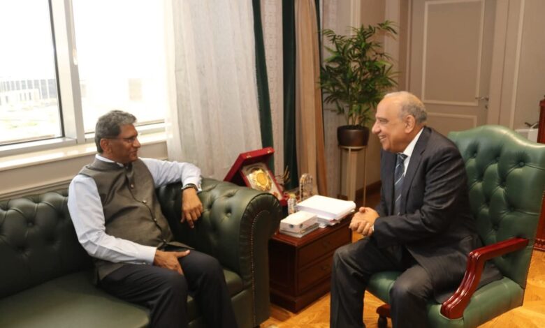 استقبل الدكتور محمود عصمت وزير الكهرباء والطاقة المتجددة السفير سوريش كيه ريدي سفير الهند الجديد لدى القاهرة ، بمقر الوزارة بالعاصمة الإدارية، لبحث سبل دعم وتعزيز فرص التعاون والشراكة وجذب مزيد من الاستثمارات فى مختلف مجالات الكهرباء لاسيما مشروعات الطاقة الجديدة والمتجددة، وتعظيم الاستفادة من التكنولوجيات الحديثة والحلول المبتكرة فى اطار خطة العمل للتحديث والتطوير والتحول الى شبكة كهربائية ذكية ومجالات الهيدروجين الأخضر