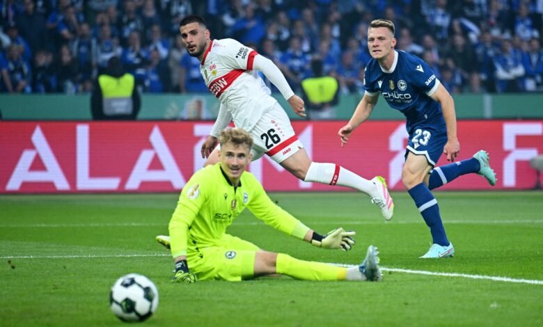 Soccer Football - DFB Cup - Final - Arminia Bielefeld v VFB Stuttgart - Olympiastadion, Berlin, Germany - May 24, 2025 VfB Stuttgart's Deniz Undav scores their third goal REUTERS/Annegret Hilse DFB REGULATIONS PROHIBIT ANY USE OF PHOTOGRAPHS AS IMAGE SEQUENCES AND/OR QUASI-VIDEO. TPX IMAGES OF THE DAY