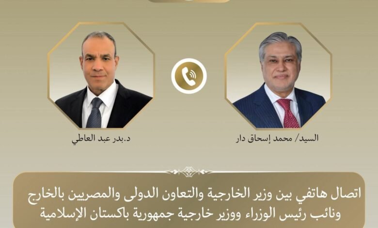 جرى اتصال هاتفي بين د. بدر عبد العاطي وزير الخارجية والتعاون الدولي والمصريين بالخارج، مع السيد محمد إسحاق دار نائب رئيس الوزراء ووزير خارجية جمهورية باكستان الإسلامية يوم الأحد ١٢ ابريل، وذلك للوقوف على آخر مستجدات الوضع الإقليمي وتنسيق الجهود المشتركة بين البلدين، وذلك في أعقاب المفاوضات التي عقدت بين الولايات المتحدة وإيران في إسلام آباد.