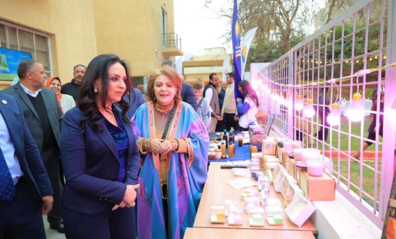 وتفقدت وزيرة التضامن الاجتماعي معرض مشروعات الجمعية، كما أطلعت على قصص نجاح من فتيات الجمعية.