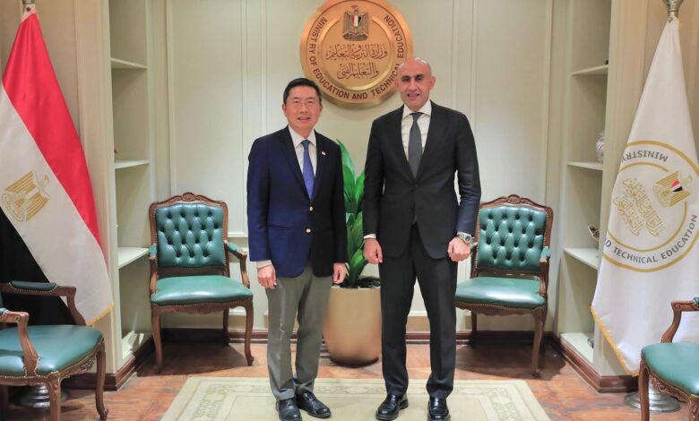 وزير التعليم يبحث مع سفير سنغافورة آليات تعزيز التعاون في مجالات التعليم الفني وتطوير المناهج وتدريب المعلمين