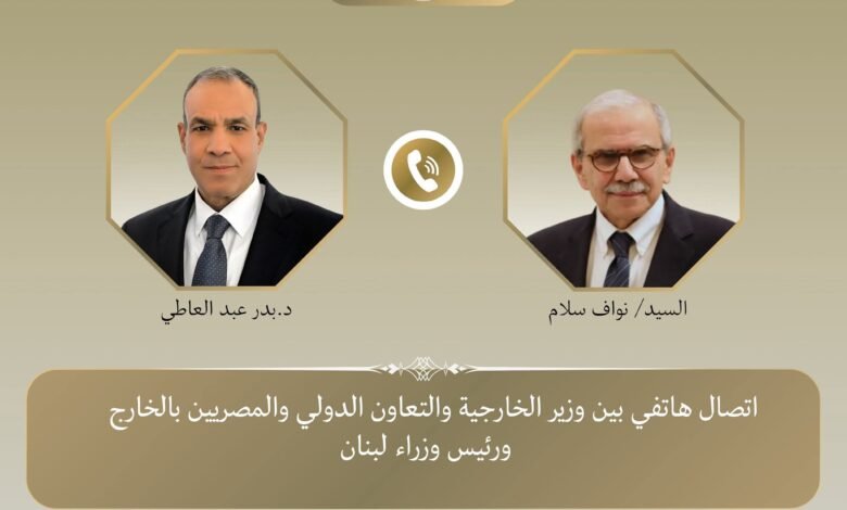 تلقى د. بدر عبد العاطي وزير الخارجية والتعاون الدولي والمصريين بالخارج اتصالاً هاتفياً من السيد نواف سلام رئيس مجلس الوزراء بالجمهورية اللبنانية الشقيقة صباح يوم الحمعة ٦ مارس الجاري، وذلك لمتابعة التطورات على الساحة اللبنانية ومستجدات الوضع الاقليمى في ظل التصعيد العسكري الخطير الراهن الذي يشهده الإقليم واتساع رقعته .