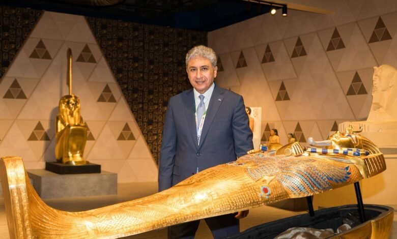 على أنغام موسيقى الهارب، افتتح، السيد شريف فتحي وزير السياحة والآثار، اليوم، متحف المستنسخات الأثرية الخاصة بكنوز الملك الشاب توت عنخ آمون، والذي أقامته وزارة السياحة والآثار ممثلة في الهيئة المصرية العامة للتنشيط السياحي، ضمن الجناح المصري المشارك بالمعرض السياحي الدولي FITUR 2026، والذي انطلقت فعاليات دورته ال 46 اليوم وتستمر حتى 25 يناير الجاري بالعاصمة الأسبانية مدريد.