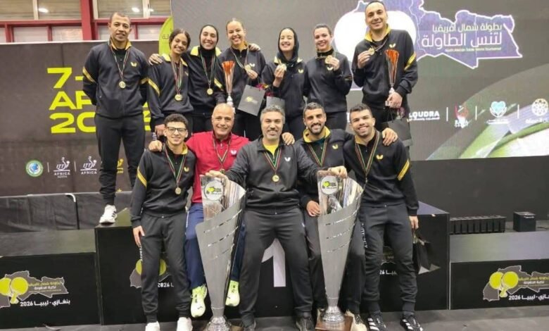 وزير الشباب والرياضة جوهر نبيل يهنئ منتخب مصر لتنس الطاولة بعد التتويج الكامل بذهبيات بطولة شمال أفريقيا بليبيا