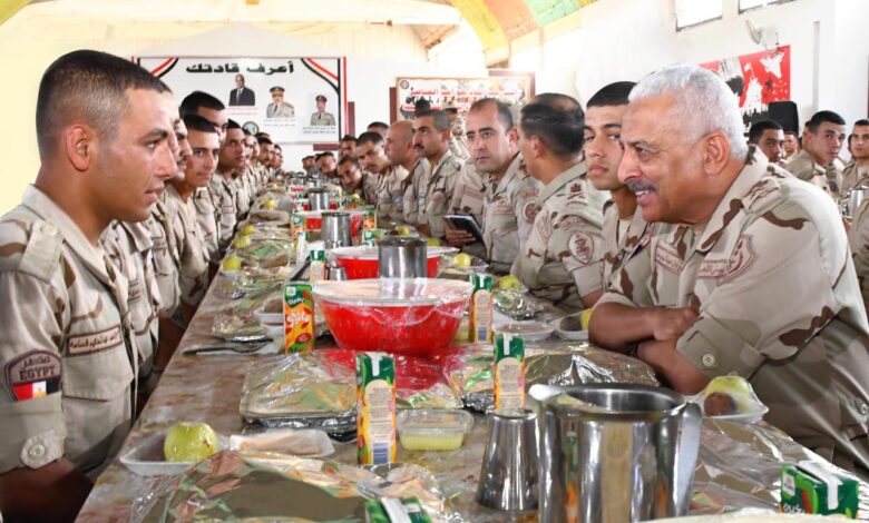 وألقى الفريق أول عبد المجيد صقر كلمة نقل خلالها تحيات وتقدير السيد الرئيس عبد الفتاح السيسى رئيس الجمهورية القائد الأعلى للقوات المسلحة لرجال المنطقة الغربية العسكرية ، مشيداً بما يقدمه حماة الإتجاه الإستراتيجى الغربى من جهود وتضحيات لتنفيذ مهامهم بكفاءة وإقتدار، مؤكداً على أن الحفاظ على الإستعداد القتالى العالى لمواجهة كافة التحديات هو الضمان الحقيقى لأمن وإستقرار الوطن فى ظل الأحداث والمتغيرات المتسارعة التى تشهدها المنطقة ، كما استعرض القائد العام للقوات المسلحة تطورات الأوضاع بالمنطقة وما يتطلبه ذلك من ضرورة الإرتقاء بمستوى الوعى والفهم الصحيح للمقاتلين إرتباطاً بما يدور حولهم من أحداث ، موصياً المقاتلين بالحفاظ على الروح المعنوية العالية والإنضباط الذاتى تأكيداً على أن رجال القوات المسلحة هم رمز العزة والكرامة والنموذج الذى يحتذى به فى البذل والعطاء من أجل الوطن ، كما شاركهم تناول وجبة الغداء معرباً عن تقديره لما إتسم به المقاتلين من إعتزاز وفخر تجاه ما يقدمونه للوطن حتى ينعم بالأمن والإستقرار .