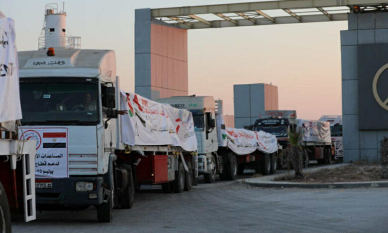 وصول شاحنات المساعدات المصرية إلى خان يونس بقطاع غزة
