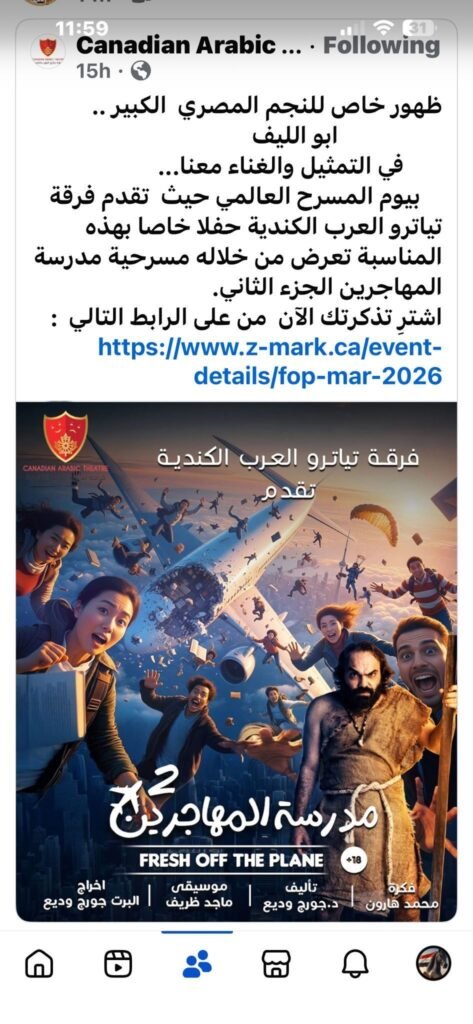 ويُعد هذا العمل خطوة جديدة في مسيرة فرقة “تياترو العرب الكندية” نحو تقديم عروض مسرحية تعكس هموم وقضايا المغتربين، وتسلط الضوء على تجاربهم اليومية في قالب فني يجمع بين الضحك والتفكير.